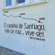 Atrás quedaba la fortaleza para de inmediato alcanzar el puente internacional, una mole, patrimonio cultural impresionante, en la predominan la piedra y el hierro, que une Portugal y España, Valença y Tui, sobre el río Miño, por carretera, ferrocarril y a pie. No es que sea precioso, pero si impresiona caminar los 400 metros que separan ambas orillas. Una vez en el otro extremo, lo primero que se puede ver son tres grandes carteles que anuncian, que estas en España, en la comunidad de Galicia y en la provincia de Pontevedra… y lo siguiente que he hecho ha sido mirar el móvil para comprobar que, efectivamente, había recuperado la hora española y perdido una hora del día, que no de vida, para mi, la vida no se rige por sistemas horarios ni relojes, sino por vivencias… momentos, situaciones, experiencias…y en estos cinco días, el Camino me ha dado mucho de esto y compensa sobradamente los sesenta minutos esfumados al alcanzar la orilla española del puente internacional.